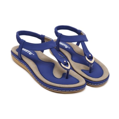 Womens Beach Flip Flops, Casual Crystal Open Toe Sandals Elastic Ankle Strap Low Wedges Slippers for Travel Daily 5