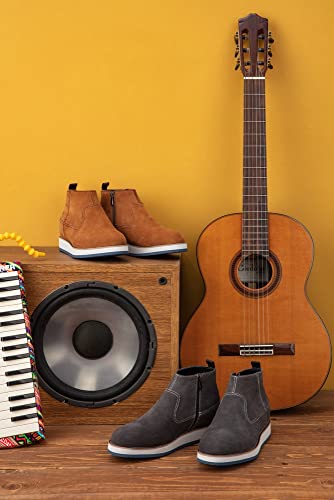 More information about CALTO Men's Invisible Height Increasing Elevator Shoes - Khaki Brown Nubuck Leather Mid-top Zipper Boots - 3 Inches Taller - Y30023- Size 8 D(M) US