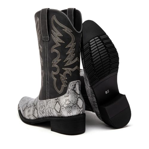 Men's cowboy boots round toe boots embroidered with traditional Western country artificial snakeskin pattern 7