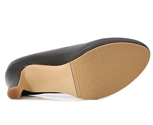 kkdom Women's Classic Leather Round Toe Bridal Wedding Party Platform Low Heel Dress Pump Shoes 6