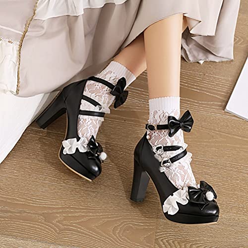 ClassicSter Womens Platform Mary Janes High Chunky Heel Cross Strap Sweet Bow Oxford Gothic Lolita Shoes Dress Pumps 5