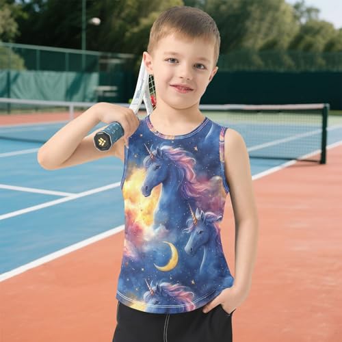 Boys Tank Top Shirts Watercolor Unicorn and Moon Sleeveless T-Shirts Crew Neck for Kids Clothing Children 4