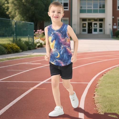 Boys Tank Top Shirts Watercolor Unicorn and Moon Sleeveless T-Shirts Crew Neck for Kids Clothing Children 5