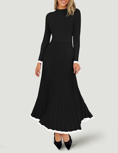 More information about ZESICA Women's Long Sleeve Sweater Dress Fall 2025 Crewneck Ribbed Knit Pleated A-Line Maxi Wedding Guest Dresses
