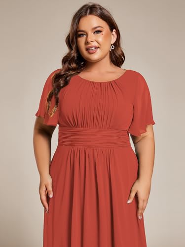 Ever-Pretty Women's A Line Crew Neck Short Sleeves Pleated Elastic Back Chiffon Midi Plus Size High Low Wedding Guest Dresses 6