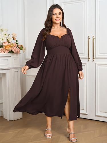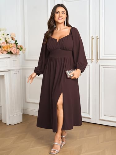 SCOMCHIC Women Plus Size Formal Dresses Long Sleeve Square Neck Wedding Guest Cocktail Split A-Line Maxi Long Dress 6