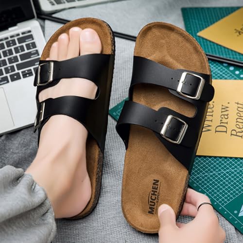 Men's Casual Double-Buckle Sandals - Leather Slides with PVC Sole for Beach & Outings 7
