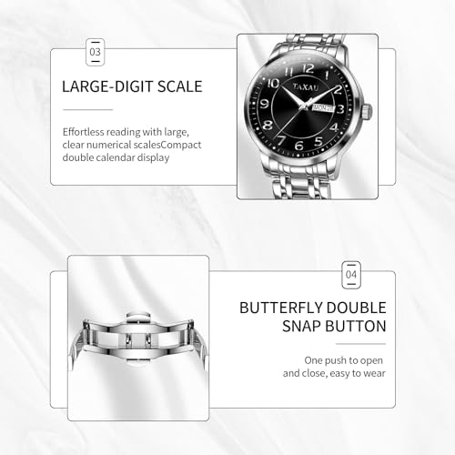 • Fashion Design: A stylish and functional men's wrist watch that combines design and functionality in an effortless way. Our men chronograph watches with retro Roman numerals, chronograph sub-dials and polish stainless steel band. From the dial to the strap, every design element demonstrates Taxau's dedication to fine craftsmanship.