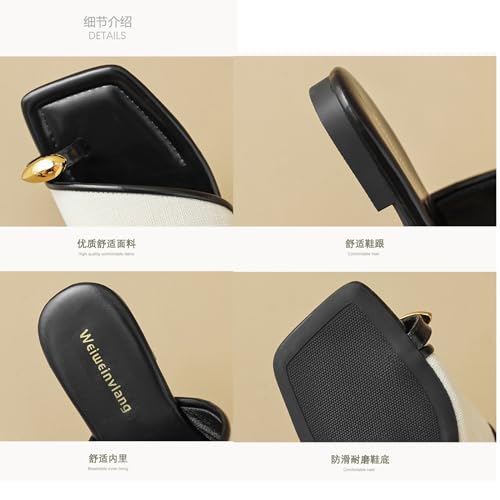 Womens Canvas Metal Toe Ring Memory Foam Dress Slippers Fashionable Comfortable Square Open Toe Flat Clip Toe Slides Sandals Casual Summer Vacation Party Slipper 4