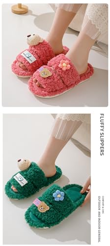 NICO×ASH Women's Cartoon Bear Plush Slippers Y2k Fuzzy Lightweight Soft Bottom Indoor Shoes with EVA Thin Sole for Home & Office 6