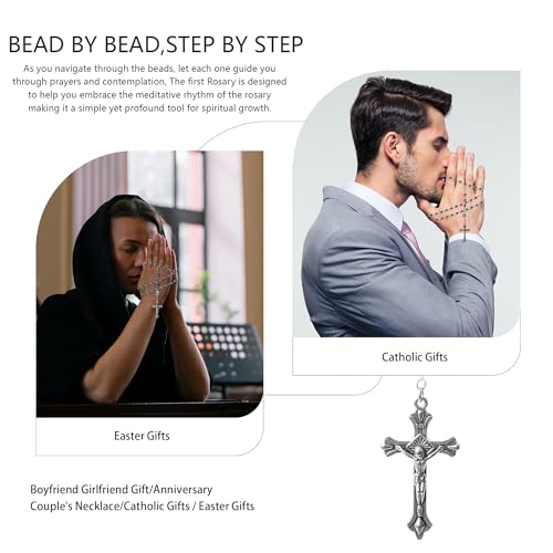 • 【DAILY FAITH REMINDER】Ergonomic design transitions seamlessly from prayer beads to wearable cross necklace. Smooth beads facilitate meditation while St. Michael medal offers spiritual protection
