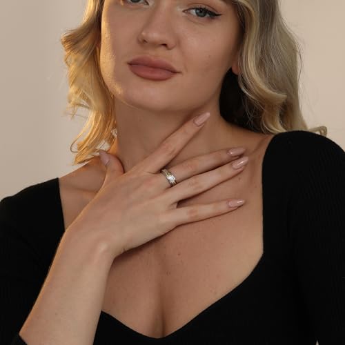 POPLYKE Sterling Silver Anxiety Spinner Rings Rotatable Mood Rings for Women Relieve Stress Gift 4