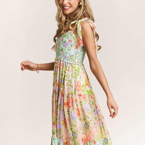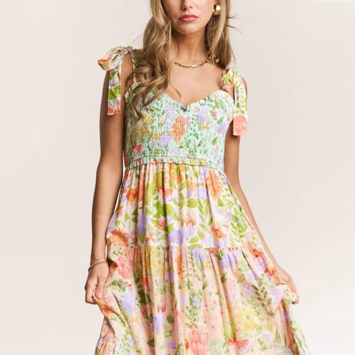 • Feature: boho floral smocked dress, sleeveless backles long dress, self tie shoulder, floral flowy dress for women.