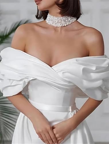 More information about Modest Off Shoulder Short Wedding Dresses for Women Bride Elegant A-Line Bridal Gowns Casual Engagement Dress