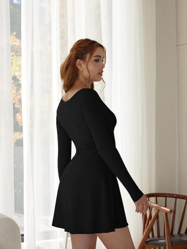 BEAGIMEG Women's Sexy Bodycon Long Sleeves A-line Sweetheart Neck Ruched Club Party Mini Dress 6