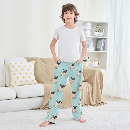 ZZKKO Cute Pugs Dog Light Blue Boys Pants for Kids Jogger Pants with Pockets S-XL 2