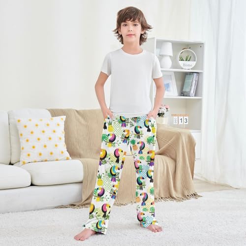 Colorful Parrot Palm Tree Boys Long Pants Soft Trousers Elastic Waist Kids Lounge Bottoms with Pockets S-XL 4