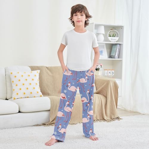 Xmas Flamingo Snowflake Boys Long Pants Soft Trousers Elastic Waist Kids Lounge Bottoms with Pockets S-XL 4