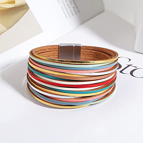 hotoo Handmade Layered Leather Bracelets Wrap for Women Stackable Chunky Colored Men Cuff Bracelet Wristband Bangle Gifts 6
