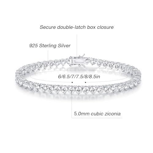 TIKJE Tennis Bracelet 925 Sterling Silver 3 Prong 3-5mm Cubic Zirconias | Classic White Gold Bracelets for Women Men | Size 6-8.5 inches 5