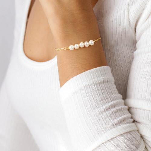 Gold Pearl Bracelets for Women, Dainty Natural Pearl Bracelets for Women Sliding Adjustable Box Chain Bracelets for Women Bridesmaid Wedding Gifts 5