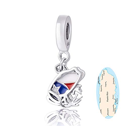 More information about Puerto Rico Coqui Frog Dangle Charm - 925 Sterling Silver Red Blue White Enamel Country Flags Dangle Bead Charms, Fits Pandora Women Bracelet Necklace