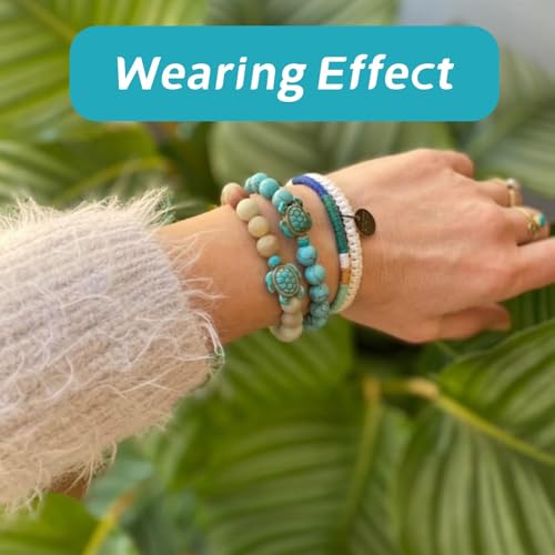 4 - Piece Sea Turtle Set: Elastic lava stone bracelets/anklets, with sea turtle bracelet for all. 5