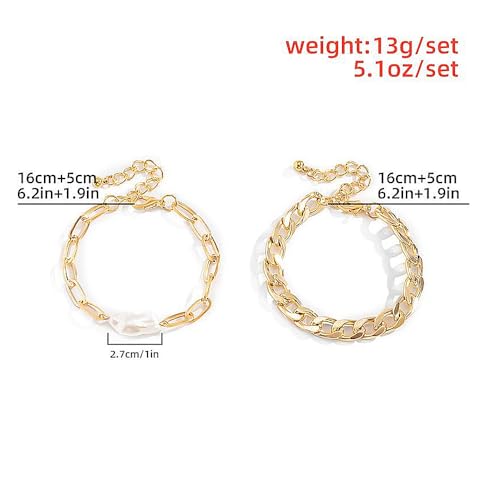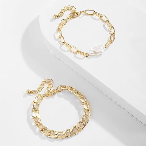HOT ! FUTIMELY Baroque Pearl Chain Bracelet Set for Women Chunky Adjustable Gold Paperclip Link Statement Bangles Personality Cuban Chain Bracelet Charm Jewelry Gift