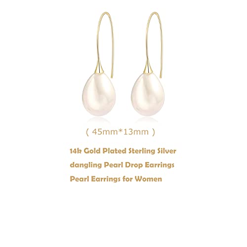 925 Sterling Silver Big White Teardrop Pearl Dangle Drop Earrings for Women Lightweight Simple Gold Hoop Dainty Pearl Dangling for Brides Weddings 6