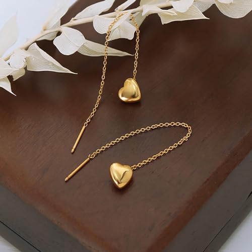 HOT ! Vintage Gold Heart Threader Earrings for Women,Silver Chain Duster Earrings Long Tassel Chain Love Dangle Earrings,Simple Everyday Jewelry Gift