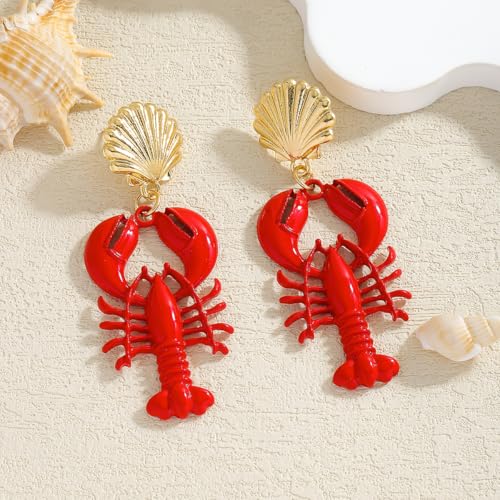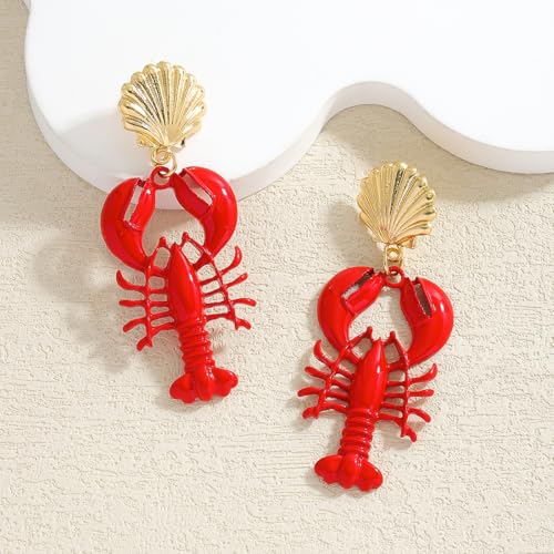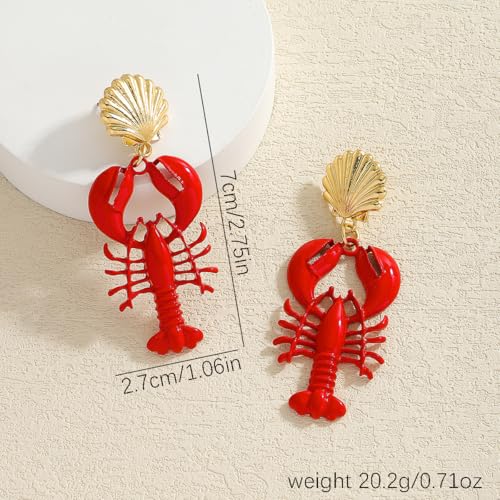 • Size & Wear Ability: Lightweight Coastal-Inspired Design. Measuring 2.75 inches in length and 1.06 inches in width (per earring), the playful lobster-shaped drops weigh just 0.71 oz. The lightweight build and secure posts prevent sagging, while the bold red hue and seashell embellishments evoke a vibrant beachside aesthetic.