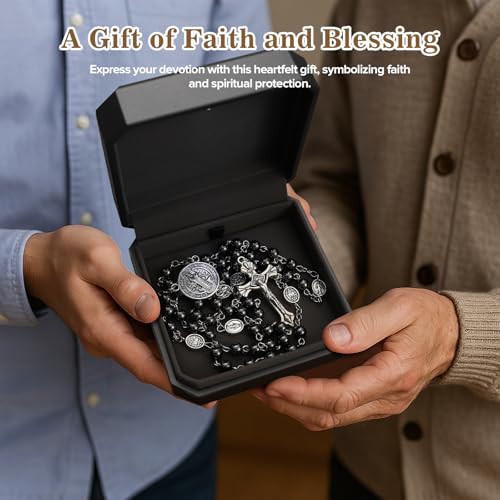 St Benedict Medals Necklace for Men Women,Saint Benedict Holy Rosary for Religious Gifts,Catholic Black Rosary Bead First Confirmation Gifts for Teenage Boys,Rosarios Catolicos Para Hombre Mujer 7