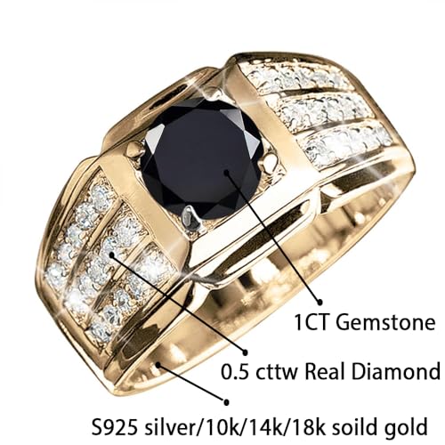1CT Gemstone Men Ring with 0.5 cttw Real Diamond for Men in 10K 14K 18K Solid Gold Promise Rings (I2-I3 Clarity) 6