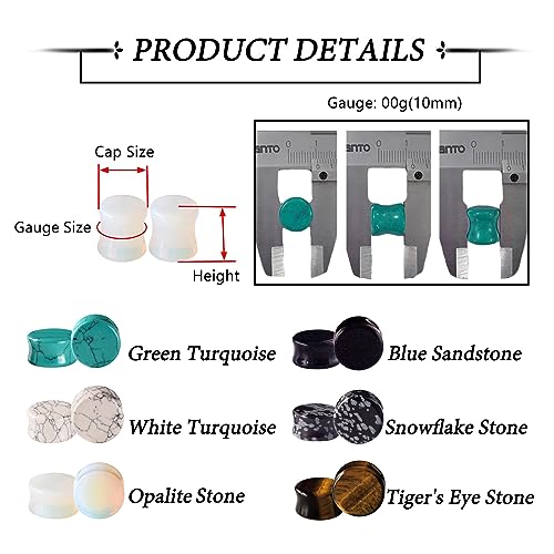 • Type of Stone: Green Turquoise, White Turquoise, Opalite Stone, Blue Sandstone, Snowflake Stone and Tiger's Eye Stone. High polished smooth surface, do not scratches to your ear. Stone piercing plug is perfect as a gift for yourself, your friend, family, or loved ones.