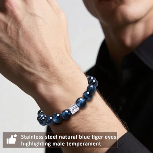 • 【 Natural Bracelet 】: This is a natural stone deep blue tiger eye stone, paired with stainless steel spacer beads. A bracelet that never fades can showcase your extraordinary masculine temperament. Natural stones are very cool to wear. You can easily pair it with other jewelry to create a perfect appearance.
