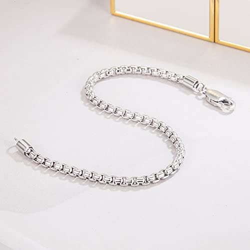 925 Sterling Silver Bracelet Men Women 3MM Square Rolo Link Round Box Chain 6.3" 6.7" 7" 7.5" 8" 8.5" 9" Bangle Unisex Jewelry Gift 7