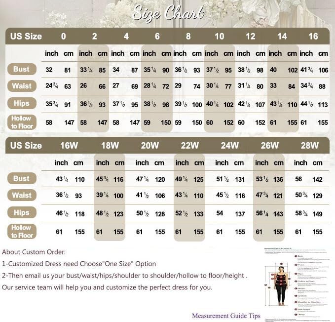 • We are a professional dress manufacturing and selling company,If you need a custom made size,you can send us your detail size: Bust, Waist, Hips and Hollow to Floor. Any queations,please contact us freely, and we are always at your service.