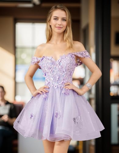 Glitter Tulle Homecoming Dresses for Teens Beaded Off Shoulder Short Prom Dresses Lace Cocktail Mini Dress 6