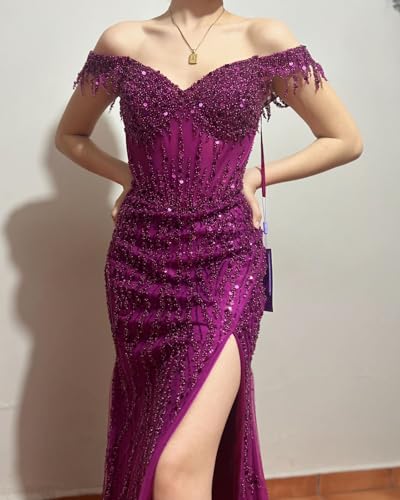 • Fabric:Sequin,Mermaid,V Neck,Off The Shoulder,Zipper,Long,Backless,Sleeveless,Backless,Slit,Built-in bra.