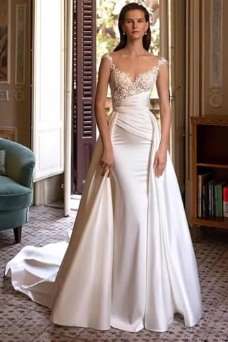 More information about Simple Satin Wedding Dresses for Bride Mermaid Boho Long Sleeve Lace Backless Beach Bridal Dress for Bride with Train