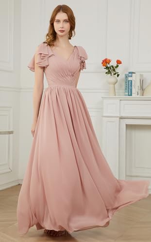 Yexinbridal Ruffle Sleeves Bridesmaid Dresses V-Neck Chiffon Long Formal Wedding Evening Party Gowns for Women 5