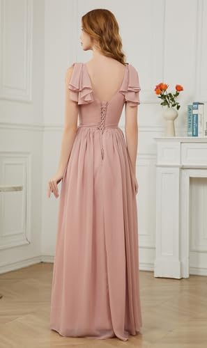 Yexinbridal Ruffle Sleeves Bridesmaid Dresses V-Neck Chiffon Long Formal Wedding Evening Party Gowns for Women 4