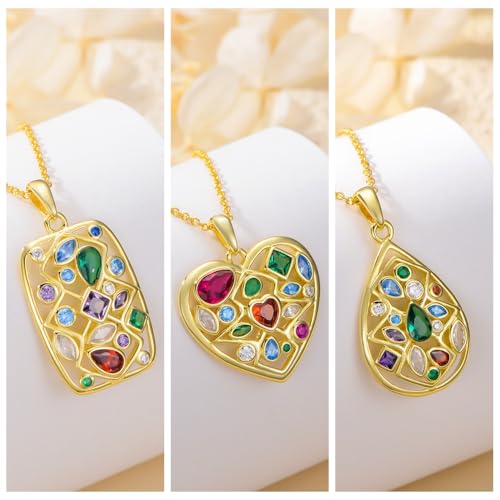 • 【Gemstone Necklace】- This colorful necklace features a unique design that combines heart, pear, and rectangular shapes. Each colorful cubic zircon sparkles under the light, showcasing its enchanting brilliance. Whether it is daily wear or special occasions, it can make you exude confidence and elegance.
