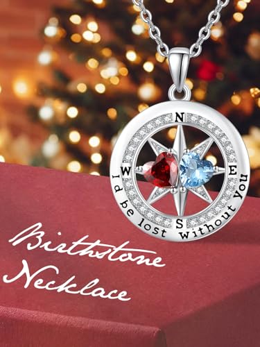 HOT ! Compass Birthstones Necklace for Women, Exquisite Anniversary Birthday Gifts for Wife Her Double Birthstone Pendant jewelry ‘I'd be Lost Without You’