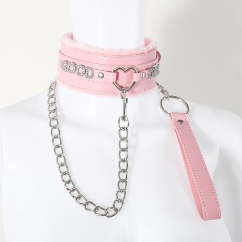 • ❤️ MATERIAL: Handmade fluffy Pink pu leather with heart ring and rhinestone, perfect match for you as eye-catching, fashionable and characeristic