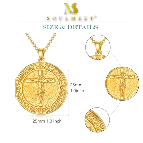 HOT ! SOULMEET Personalized Large Round Crucifixion Cross Locket Necklace That Holds 2 Pictures Photo Silver/Gold Christianity Cross with Jesus Locket 1 Inch Photo Locket Gift for Woman Men