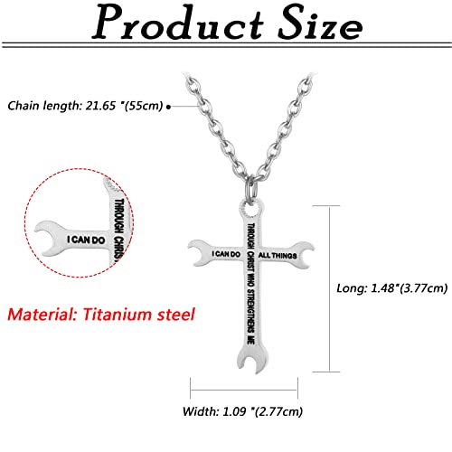 Cupimatch Men's Wrench Cross Pendant Necklace Titanium Steel Bible Verse Philippians 4:13 I CAN DO ALL THINGS Plumber Tool Cross with 22" Chain Black Gold Silver 3