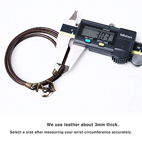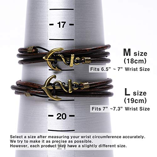 JBANS Handmade Genuine Leather Wrap Bracelet for Mens - Metal Anchor Hook Mens Leather Bracelets, Men's Jewelry, M Size - FITS 6.5"- 7.3" Wrist Size 3
