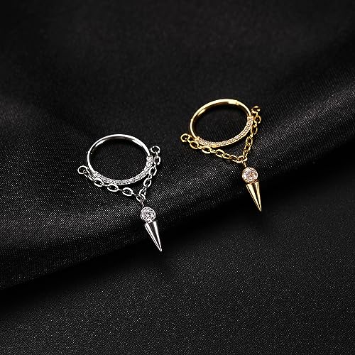 PEAKLINK Dangle Nose Ring Septum Piercing Jewelry 16G Septum Rings Surgical Steel Seamless Clicker Ring Dangly Nose Hoop Ring Daith Earrings Helix Rook Tragus Conch Jewelry Conch Earring 4