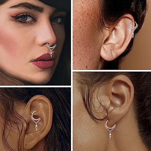 PEAKLINK Dangle Nose Ring Septum Piercing Jewelry 16G Septum Rings Surgical Steel Seamless Clicker Ring Dangly Nose Hoop Ring Daith Earrings Helix Rook Tragus Conch Jewelry Conch Earring 5